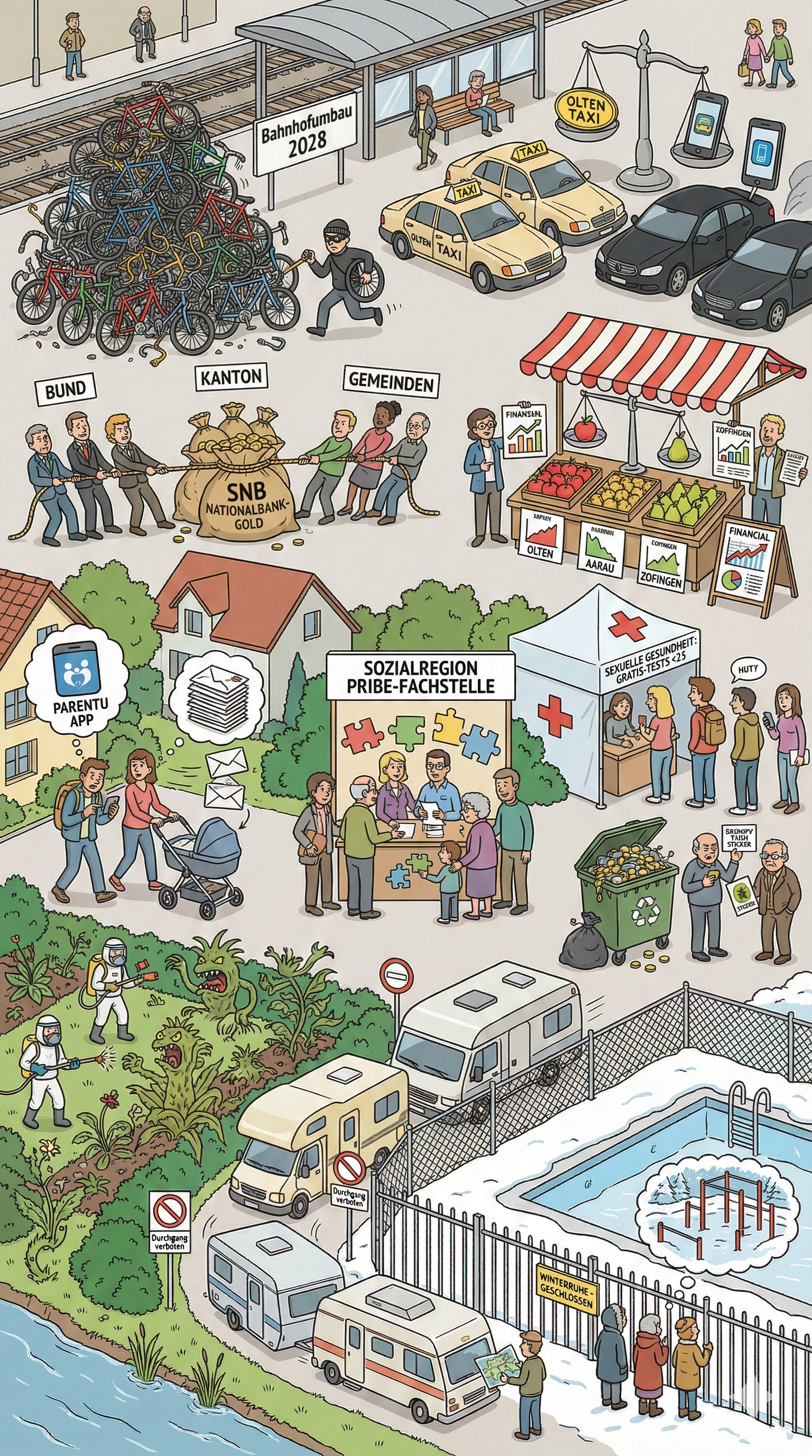 Die Mehrheit argumentiert mit dem Timing — aber wer am Bahnhof Olten täglich sein Velo abstellt, hat von Timing-Argumenten wenig. Der Bahnhofumbau ist noch Jahre entfernt, und bis dahin bleibt das Chaos bestehen. Symptomatisch ist auch, dass ein früherer Pilotversuch beim Stadttheater, auf den Laura Schöni hinweist, nie ausgewertet wurde. Das Parlament vertröstet auf die Zukunft, statt pragmatische Zwischenlösungen zu prüfen.